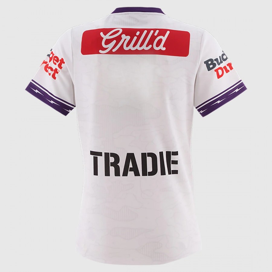 Show your support on the road with the 2026 Melbourne Storm NRL Men's Away Jersey. This high-performance jersey is designed for both players and fans who want the perfect mix of comfort and durability. Crafted with moisture-wicking, quick-drying fabric, it ensures you stay cool under pressure — whether you’re training or cheering from afar. The ergonomic, high-stretch fit allows unrestricted movement, while the 3D Silicon Storm crest stands proudly on the chest. A lightweight and breathable design means this jersey performs as well on the pitch as it does in the stands. Wear it proudly across Melbourne or on away trips to show your Storm colours wherever you go.